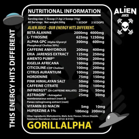 Sale price £40.00Gorillalpha Alien Juice is a mega dosed pre-workout designed for experienced lifters... -